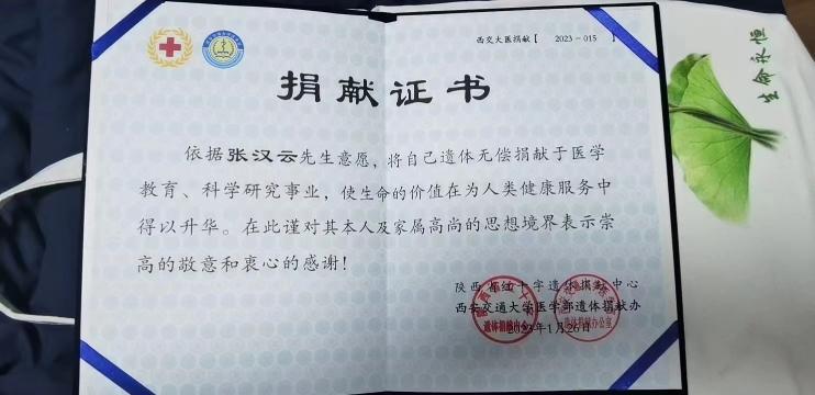 近日,beat365马克思主义学院(原陕西教育学院政教系)主任,教授,享受国务院特殊津贴专家张汉云先生不幸离世。临终前,张汉云教授嘱咐亲属将其全部遗体捐献给陕西省红十字遗体捐献中心、西安交通大学医学部,用于器官移植、医学教育及科学研究,将自己最后的光与热奉献给医疗事业。目前,他的眼角膜已经捐给了两位盲人,让他们重见光明。2月1日,张汉云教授遗体捐献暨遗体告别仪式在陕西省红十字遗体捐献中心举行。
