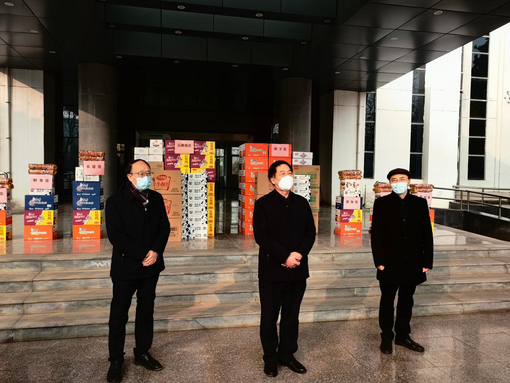 近日,校党委书记、校长邵必林、党委副书记权秋虎、副校长唐宏看望慰问寒假期间坚守一线加班值守的党委组织部、人事处、教务处、财务处、国资处以及安全保卫、后勤保障、工程建设等单位在岗职工,为大家送去新春祝福和节日慰问。