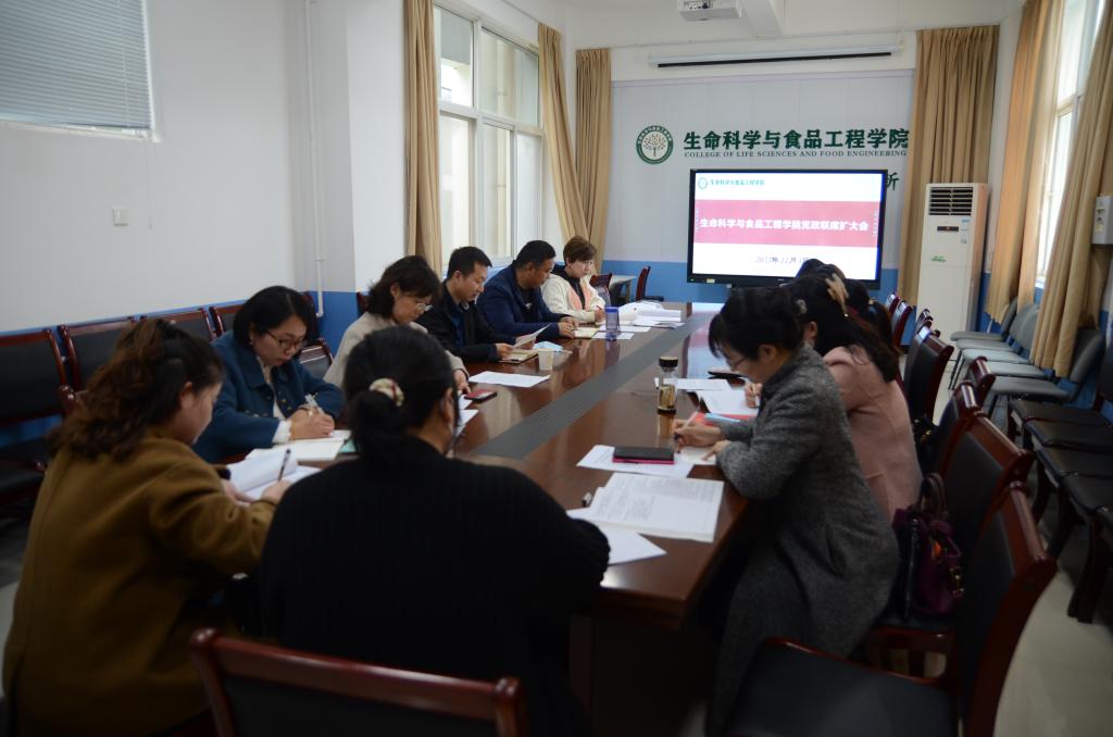 2022年11月3日,生命科学与食品工程学院党委在积学楼C202会议室召开学院党委会、理论学习中心组(扩大)学习会和党政联席会,学院全体党委委员、科级干部、各系支部书记、主任以及全体辅导员参加了会议,副校长李强出席并指导会议。会议由生命科学与食品工程学院院长兼党委书记王立志主持。