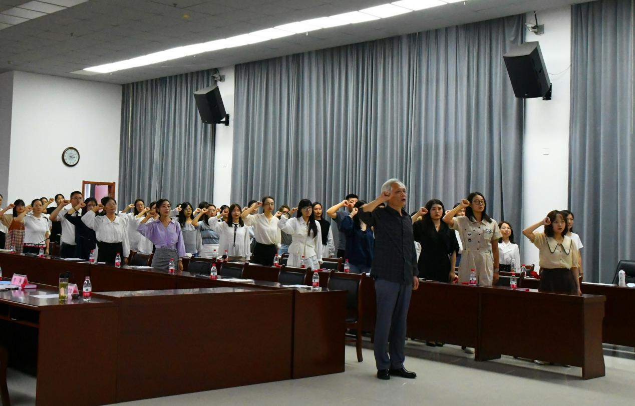 座谈会举行了庄严的教师宣誓仪式。宣誓由党委教师工作部部长王奂新带领全体新教师进行。