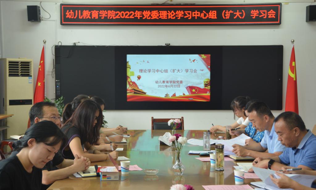 2022年6月22日下午,幼儿教育学院党委在启真楼307会议室召开理论学习中心组(扩大)学习会。学院党委委员、各党支部书记以及学生党员、发展对象代表参加了学习会。校党委书记付建成出席指导幼儿教育学院党委理论学习中心组学习会并为师生讲授形势与政策课。学习会由幼儿教育学院党委副书记(主持工作)王继康主持。