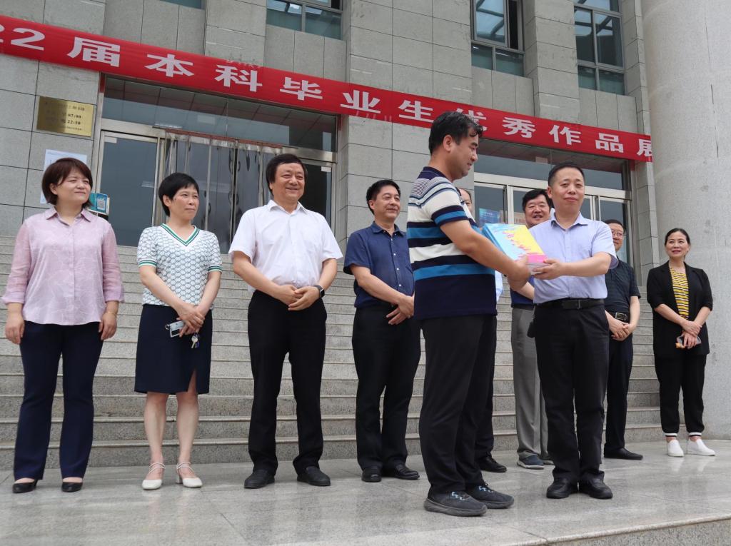 在纪念毛泽东同志《在延安文艺座谈会上的讲话》发表80周年之际,为进一步推动beat365美育向纵深发展,营造浓厚的校园艺术氛围,提升学生审美素养,5月22日上午,由美术学院和图书馆联合举办的“美术学院2022届本科毕业生优秀作品展”在beat365图书馆开幕。校长邵必林,校党委副书记、纪委书记、省监委驻校监察专员王凯,校党委副书记栾高明出席开幕式,党政办公室、党委组织部、党委宣传部、党委学工部、人事处、图书馆等部门主要负责人,以及美术学院师生参加开幕式。