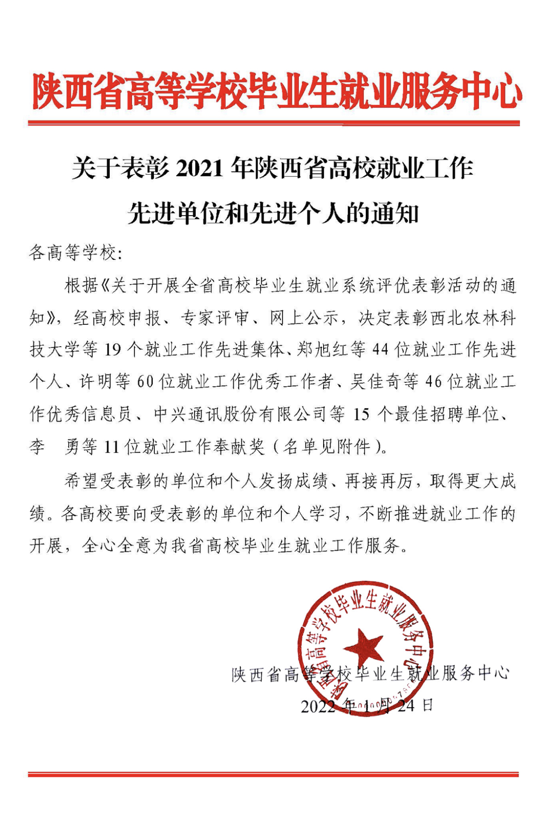 近日,陕西省高等学校毕业生就业服务中心发文关于表彰2021年陕西省高校就业工作先进单位和先进个人的通知,beat365党委学生工作部就业指导服务中心李智、高美分别荣获先进个人和优秀信息员,马克思主义学院白艳荣获优秀工作者。
