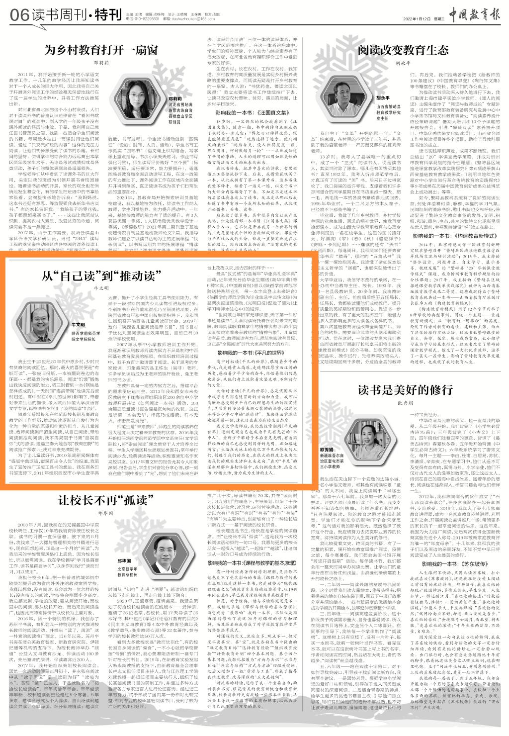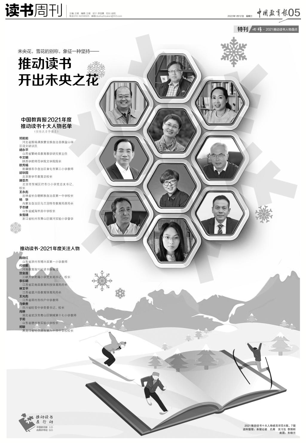 据悉,《中国教育报》“年度推动读书十大人物”活动致力于发现推动读书先进典型人物。该活动自2004年开展以来,发现并推出了一大批推动读书的典型,传播“乐读”的理念,培育“好读”的种子,用智慧、勇气与行动诠释着推动读书的意义,为全民阅读贡献着不容忽视的力量。