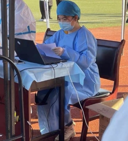 我是学管会的一名学生干部,加入志愿者队伍后,我一直用实际行动践行着奉献、有爱、互助、进步的志愿精神。在数次核酸工作中,协助学校组织全体学生及教职工准确无误、安全有序地完成检测,引导大家排队间隔至少一米、提前打开一码通、有序撤离,让核酸检测工作有序高效的进行。只要穿起防护服,戴上口罩、手套、护目镜,挂上学管会的工作牌,站在核酸工作点,我就是寸步不退的志愿者,有几天刮风下雪,难免冻得手脚冰凉,嗓子也哑了,不能按时吃饭,每天回到宿舍后腰都直不起来,但这些都不能阻挡我积极乐观、坚守岗位。这次特殊的经历会成为我最珍贵的回忆,我为我能成为一名志愿者而感到荣幸。