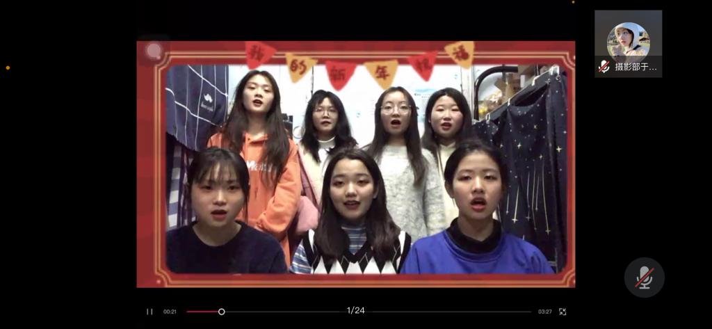 随后,同学们第一次在宿舍通过线上进行表演,虽没有灯光绚丽,没有乐声悠扬,没有观众的喝彩与掌声,但每个人的心里却感受到温暖和喜悦,即使隔离在宿舍,隔着屏幕也能感受到彼此热烈的心跳。优美喜庆的舞蹈、动听的歌曲、让人捧腹的相声小品、快板魔术,各类节目应有尽有;节目期间还有各年级辅导员老师抽中的宿舍祝福、抢红包等互动环节,为同学带去欢乐,线上晚会精彩纷呈。
