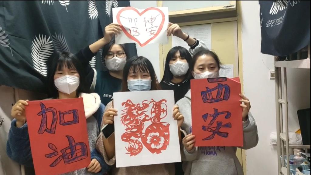 美术学院领导班子、辅导员老师及各年级宿舍代表前期为学生们录制了新年祝福视频,温暖的字句满含着对学生们的新年问候和美好的祝愿。2021级的学生通过屏幕共享为大家展示了提前录制的精彩纷呈的节目,同学们以饱满的热情充分展示自己的才艺,用身边的乐器演奏动人的旋律,用优美的歌声驱赶疫情的阴霾,用迷人的舞姿展现青春的活力,用流畅的画笔讲述抗疫故事。2020级、2019级的同学们发挥专业特长,用“剪窗花”、“写福字”、“写春联”等传统的节日习俗来为大家送上新春的祝福。同学们以宿舍为单位统一进行线上观看,并通过现场连线,进行了热情的互动,活动精彩纷呈,为学生们留下了暖心的元旦回忆。