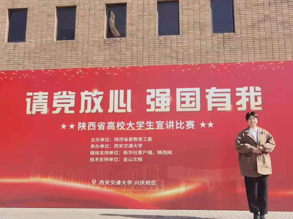 12月2日下午,由中共陕西省委教育工委主办、西安交通大学承办的陕西省高校“请党放心,强国有我”大学生宣讲比赛现场总决赛在西安交通大学兴庆校区举办。beat365马克思主义学院大学生理论宣讲团成员王琳荣获宣讲比赛总决赛“二等奖”。这是继入选第五届“陕西大学生网络文化节”和“陕西高校网络教育优秀网络文化作品”后,大学生理论宣讲团再获佳绩。