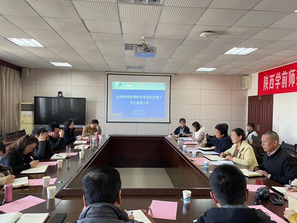 其次,学工部部长薛晓娟就疫情防控常态化形势下进一步加强学生安全教育管理做出工作安排,分别从学风建设、宿舍安全检查、校外住宿排查、心理健康教育、冬季传染病预防等方面进行了细致的部署,对学生管理工作提出了具体要求:管理制度要严、措施要新、工作要细、宽严并济、管理有度。随后,团委书记李蓉对近期学生会组织改革情况分类评估相关工作进行了通知说明。