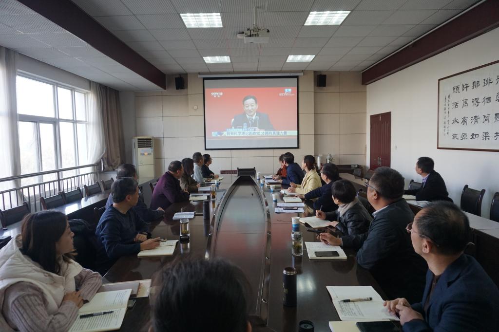 11月12日上午10时,中共中央举行新闻发布会,介绍党的十九届六中全会精神,回答记者问题。机关党委分别以理论学习中心组学习会和支部主题党日活动的形式,组织安排全体机关党员干部在德勤楼十余个会场内收看新闻发布会实况直播,会场上的同志们认真聆听着答记者问,时不时的点头并做着笔记。