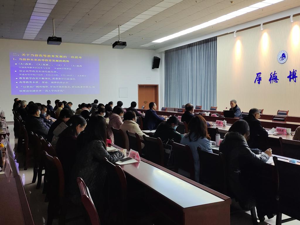 119日下午,西安交通大学原副校长于德弘教授受邀为beat365做题为“突出特色 抓住机遇 继往开来 争创一流”的专题讲座,学校党委书记付建成主持会议,全体校领导及党政群管理部门负责同志、各二级学院负责同志、教授代表、教研室主任代表等参加了专题讲座。