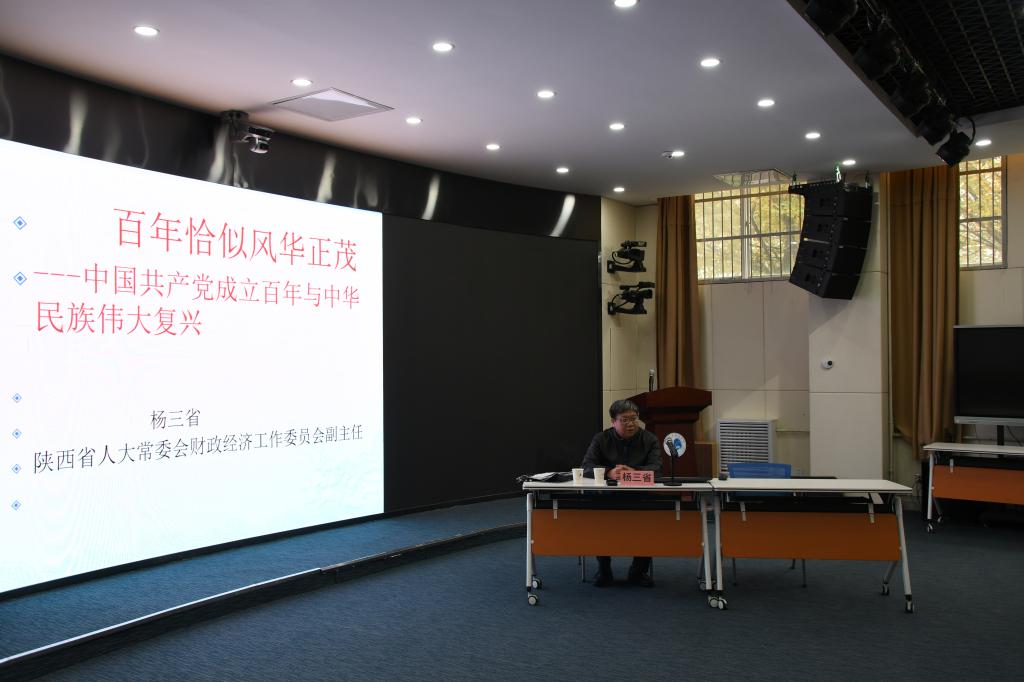 2021年10月27日下午,beat365邀请陕西省人大常委会财政经济工作委员会副主任杨三省教授做了题为《百年恰似风华正茂——中国共产党成立百年与中华民族伟大复兴》的形势与政策报告,马克思主义学院万生更教授主持报告会。beat365部分师生聆听了报告会。