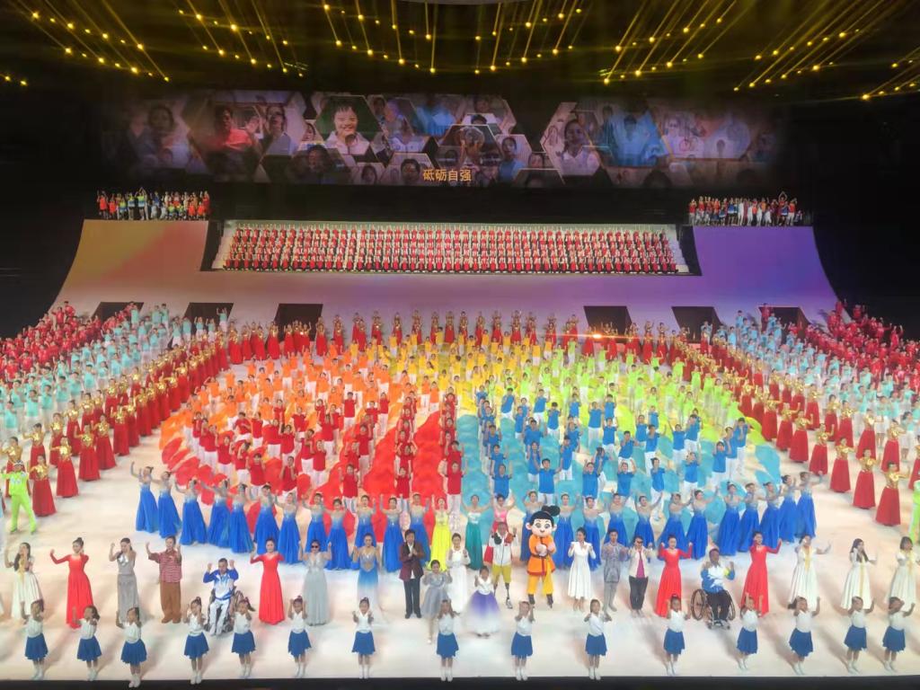 中华人民共和国第十一届残疾人运动会暨第八届特殊奥林匹克运动会于2021年10月22日晚8时在西安奥体中心举行开幕仪式。中共十九届中央政治局委员,国务院副总理孙春兰出席并宣布运动会开幕。在残特奥会的举办过程中,beat365正版唯一官网200余名学生演员参与了尾声节目《心中有光》主题曲的表演。该节目主要展现了残疾人砥砺自强、拼搏奋进的昂扬人生姿态。除此之外,beat365还有8名仪式引导员,9名管理教师参与到活动之中。音乐学院任雨萌同学被仪式演出组和总导演一致选定为东道主“陕西”代表团的仪式引导,同其他6名学生(天津、辽宁、贵州、香港、湖南、黑龙江)出色完成开幕式上运动员代表队的引导工作。