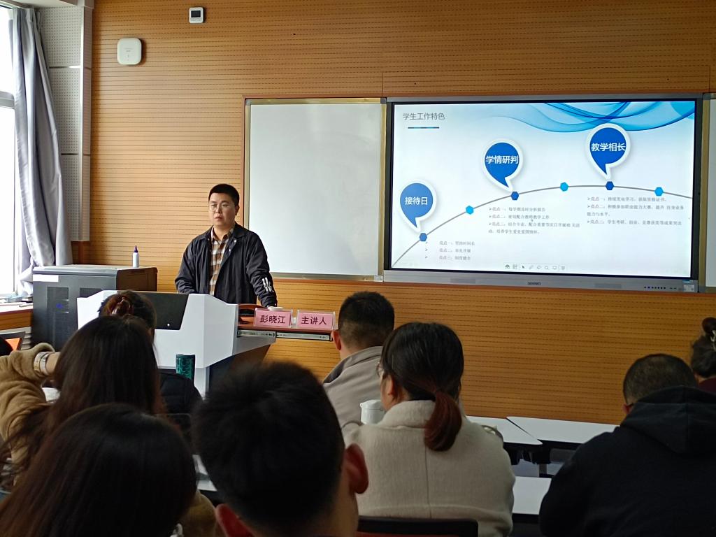 化学化工学院党委副书记彭晓江就如何做好辅导员工作为新进辅导员进行了专题讲座分享,从个人工作情况介绍、学生工作经验交流、新入职工作引导等三个方面,分享了自己在辅导员岗位多年来的工作经验及心得体会,要践行“从实践中来到实践中去”的工作理念和工作方法,把围绕学生、关照学生、服务学生贯彻落实到工作实践中。