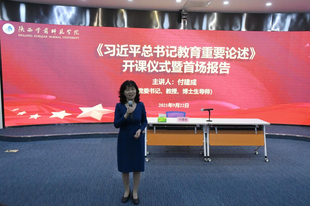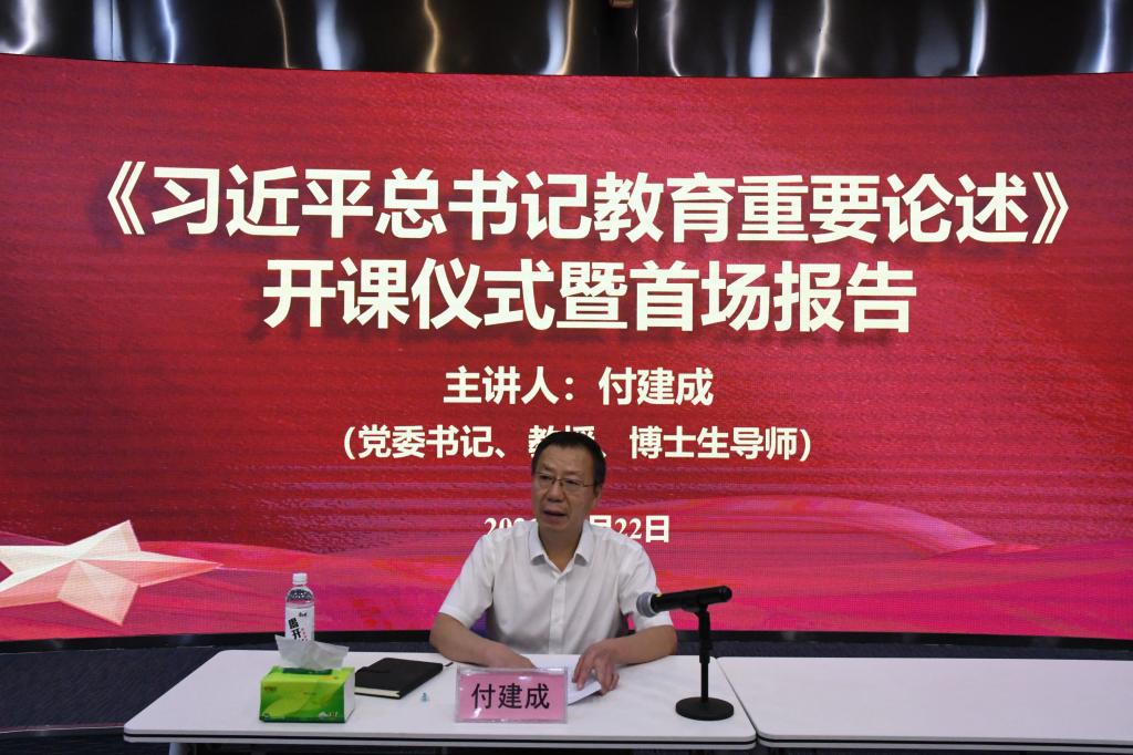 9月22日下午,学校在师范生技能训练中心举行《习近平总书记关于教育的重要论述》开课仪式暨首场辅导报告。党委书记付建成、党委副书记权秋虎、副校长相艳出席。副校长相艳主持开课仪式。
