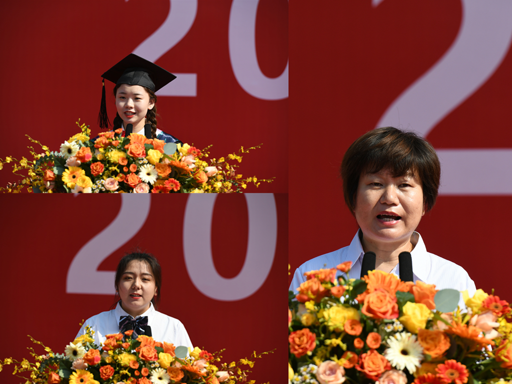 教师代表崔洁教授、毕业生代表赵玥同学、以及在校生代表张明珠同学分别在大会发言,为毕业生送上启程的祝福和希冀。