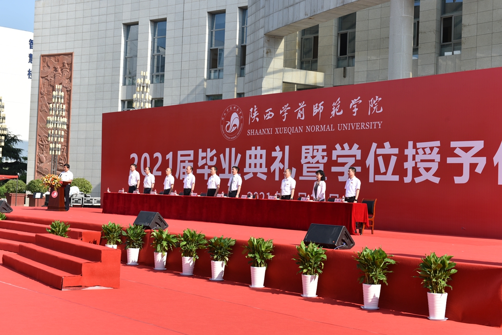 典礼在雄壮的国歌声中拉开帷幕。副校长相艳宣读了《beat365正版唯一官网2021届毕业生毕业决定》《beat365正版唯一官网2021届毕业生学士学位授予决定》、《关于表彰2021届陕西高校优秀毕业生和优秀学生干部的通报》和《beat365正版唯一官网“学习标兵”表彰决定》。