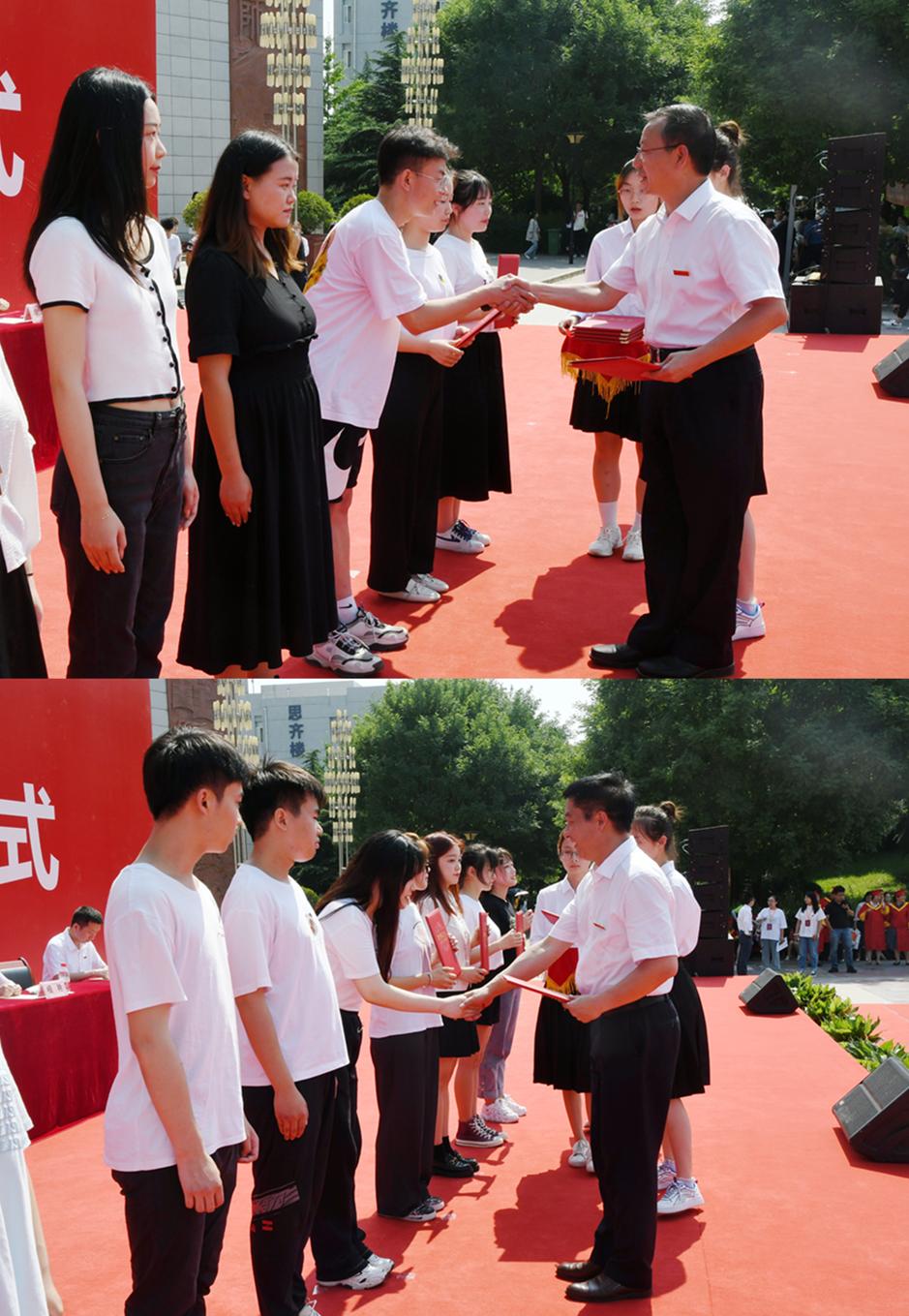 仪式上,全体毕业生面对校旗庄严宣誓,铿锵誓言展示出师院学子不忘初心、勇敢前行的信心、决心和力量。随后毕业生代表手捧鲜花为教师代表、毕业班辅导员代表、管理服务育人代表送去了深深的祝福,并对老师的关爱以及辛勤的教诲表示感谢,校党委书记付建成、校长邵必林分别为“省级优秀毕业生”代表和“学习标兵”代表颁发荣誉证书。