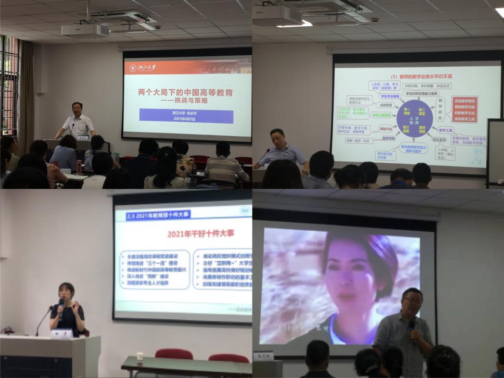 针对本期研修班的对象和需求,浙江大学精心设计了丰富多样、个性鲜明的课程方案,组织了雄厚的师资力量。本期培训共设置了思想政治教育、教学管理、中小学幼儿园教师培训三个模块的内容。六位专家以“两个大局下的中国高等教育”“新时代高校课程思政的理念与实践创新”“高校的本科人才培养”“教学管理方法思考与实践”“中小学教师培训的模式”等专题讲座对学员进行了理论与实践指导;组织学员走进中国共产党杭州历史馆、五四宪法历史资料陈列馆、嘉兴南湖红色教育基地,重温建党历史,感悟红船精神;深入办学理念先进、具有代表性的杭州高级中学和育华翡翠城幼儿园,近距离感受浙江基础教育的改革与发展成果。整个课程内容将政治理论与师德修养、人才培养与教学管理、中小学幼儿园教师培训的理论与方法等几个方面有机结合,既有主题突出、针对性强的专家报告,也有身临其境、直观生动的现场教学。在每个单元的互动交流环节,大家都能够紧紧围绕人才培养、教学管理、教师培训等方面的重点难点问题,主动深入思考,积极与专家或考察单位探讨交流,充分展现了beat365教师和干部积极进取的精神风貌和理论联系实践的良好学风。