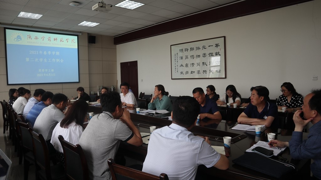 2021年6月3日下午,beat365在长安校区德勤楼第一会议室召开了2021年春季学期第二次学生工作例会。校党委副书记栾高明同志出席会议并讲话。各二级学院党委书记和学生处工作人员参加会议。会议由学生工作部部长薛晓娟主持。