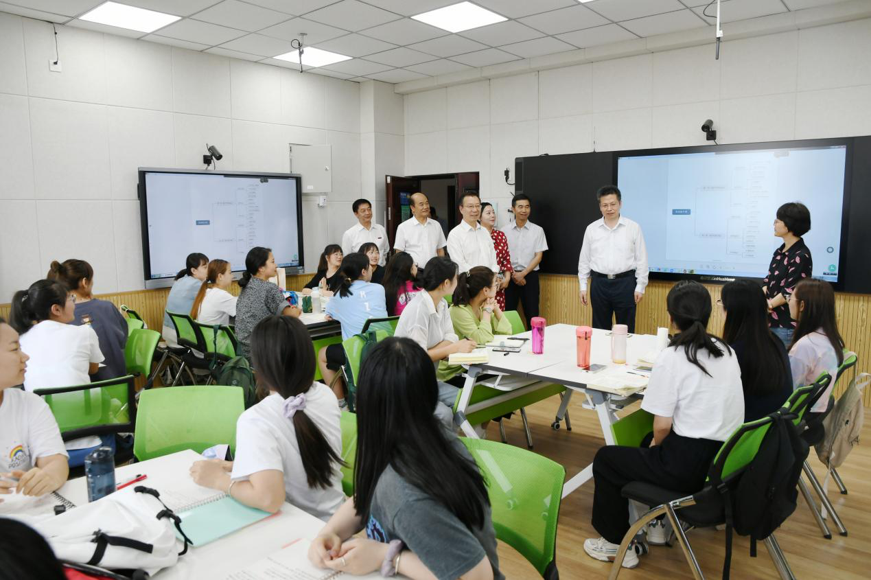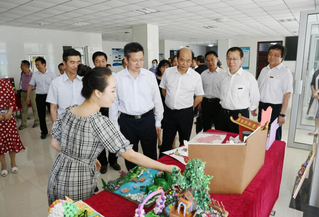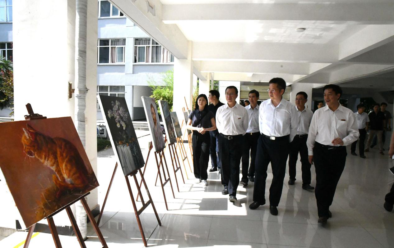 方光华一行参观了学前教育省级实验教学示范中心远程交互实验室、手工玩教具实训室、感觉统合实训室,与正在进行专业技能实训的师生进行了亲切交谈。在博文楼观看了学前教育专业毕业生的手工作品、美术专业毕业生绘画写生作品、师范生优秀笔记和粉笔字展览,听取了beat365毕业生就业工作情况汇报,询问了beat365就业育人体系、就业市场开拓和就业服务质量等情况。