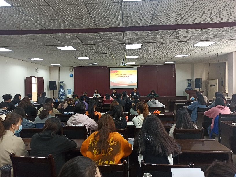 党总支书记杨阳作动员讲话。她强调,2021年是“十四五”开局之年,是全面建设社会主义现代化国家新征程开启之年,在庆祝我们党百年华诞的重大时刻、在“两个一百年”奋斗目标历史交汇的关键节点开展党史学习教育意义重大。她就开展好党史学习教育提出三点意见:一是强化思想认识,提高政治站位,准确把握党史学习教育的重大意义;二是把握目标要求,深入学思践悟,不断推动党史学习教育走深走实;三是强化组织领导,压实工作责任,切实提高党史学习教育实效。她要求,各支部及全体党员要认真落实校党委和学院党总支的工作部署,深入学习党的历史和党的理论,继承和发扬党的光荣传统和优良作风,并转化为推进工作、继续前进的强大动力,推进学校和学院事业高质量发展。