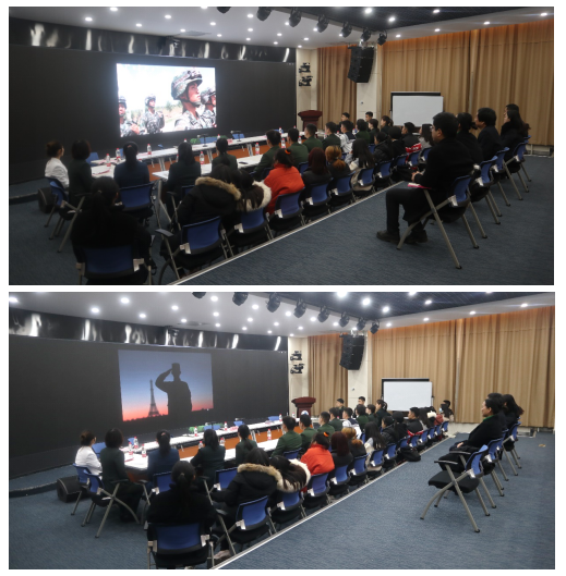 首先,大家观看了退役复学学生在部队的精彩事迹剪辑。视频中的战士们在荒凉浩渺的戈壁上负重行进,在如火烈日的炙烤下坚持训练,在漫天席卷的风沙中巍巍屹立,无畏无悔地戍守着祖国的边疆,一幕幕震撼的场景让会场中的每一个人心中都奔涌回荡着热烈的爱国情怀。随后,退役复学学生结合自身在部队的成长经历踊跃发言,与战友们、同学们分享了军旅生活的收获和体会。他们中既有参加建军90周年检阅的方阵士兵,也有青藏高原驻训的通信女兵;既有在武汉抗击疫情、抗洪抢险的战士,也有手握钢枪、追捕毒贩的武警战士。每一个故事都是他们用青春和汗水谱写的爱国之歌。同学们纷纷表示,他们将继续保持军人的优良作风和顽强意志,专注于自身学业和综合素质的提高,积极面对学习和生活中的挑战,规划好自己的大学生活。