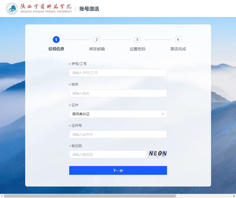 3.在“信息校验”页面填入本人的“学号/工号,姓名、证件类型、证件号”等信息;