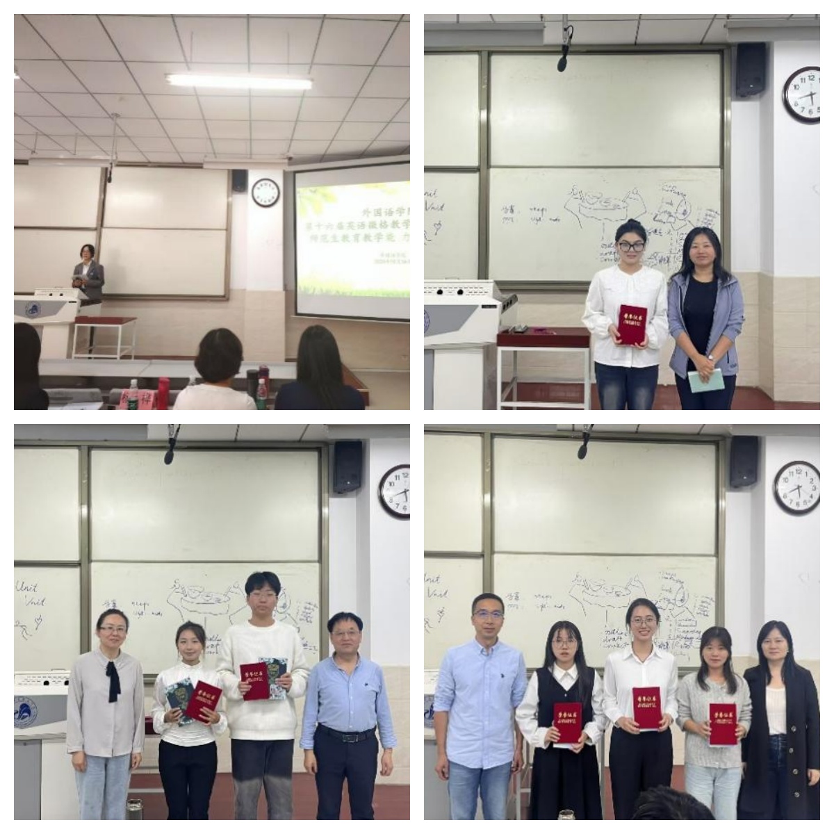 经过激烈角逐,本次英语微格教学比赛共评选出一等奖1名、二等奖2名、三等奖3名。来自23级英语本科一班的唐韵淇荣获一等奖,来自23级英语本科一班的李胤学和23级英语本科二班的池睿荣获二等奖,来自22级英语本科一班的肖飞、王冬梅和22级英语本科三班的梅琦荣获三等奖,其余参赛学生荣获优秀奖。我院将从获奖选手中选派优秀学生参加beat365第七届师范生教育教学能力大赛决赛。
