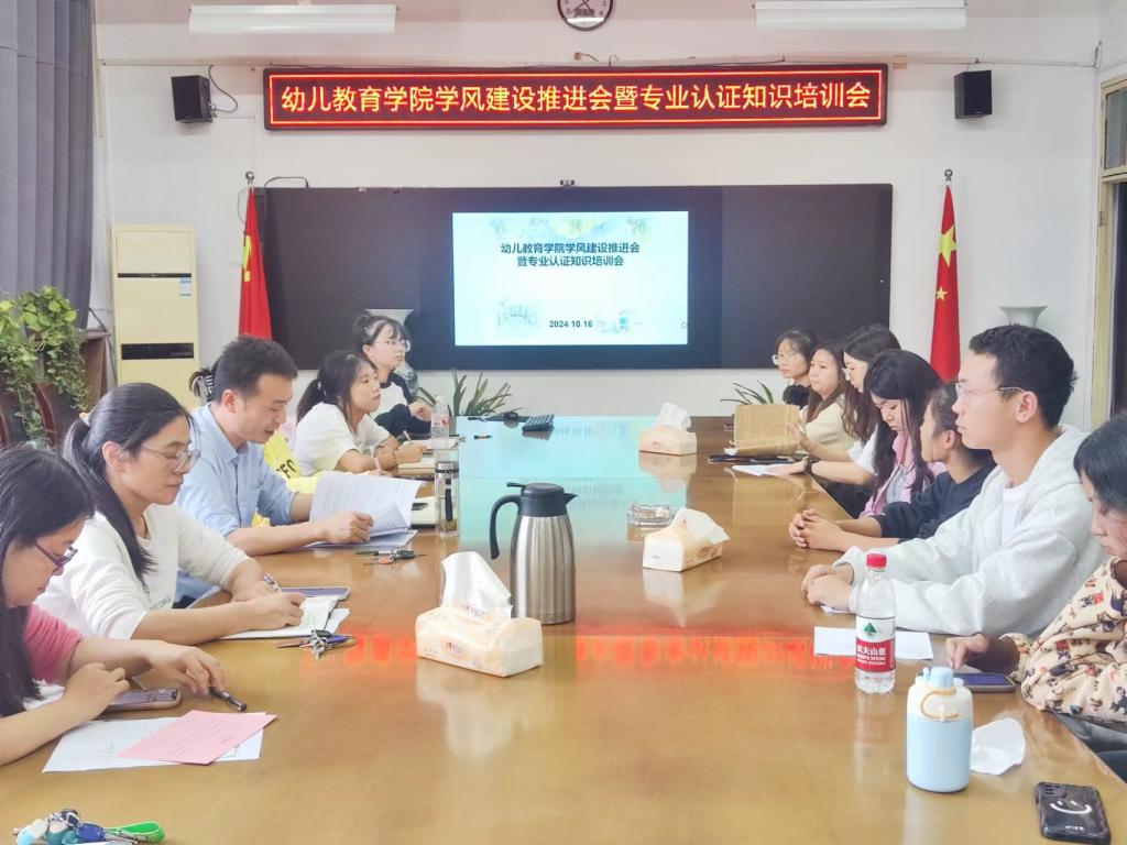 为推进学前教育专业认证工作顺利开展,让学生更加明确专业认证工作的相关要求,提高学生对专业认证工作“我参与,我受益”的主体责任意识。幼儿教育学院于2024年10月16日在启真楼307会议室召开学风建设推进暨专业认证培训会。幼儿教育学院党委副书记(主持工作)王继康、学生社团指导教师、全体辅导员,以及学院各学生组织、社团主要学生干部参会。会议由学院党委副书记苏群主持。