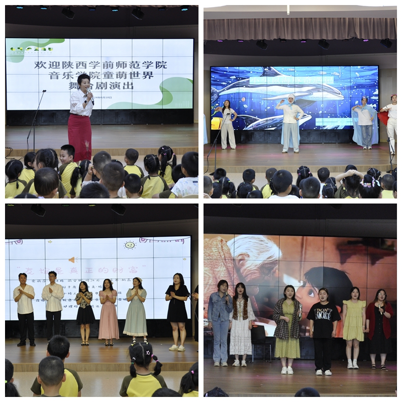 大学生走进幼儿园进行艺术实践活动,不仅让小朋友们在欢乐中感受儿童音乐剧的魅力,激发他们对音乐、舞蹈、绘画等艺术领域的兴趣和热爱,更在通过丰富多彩的戏剧展演内容,进行家国情怀、人文精神、环境保护的宣传教育。