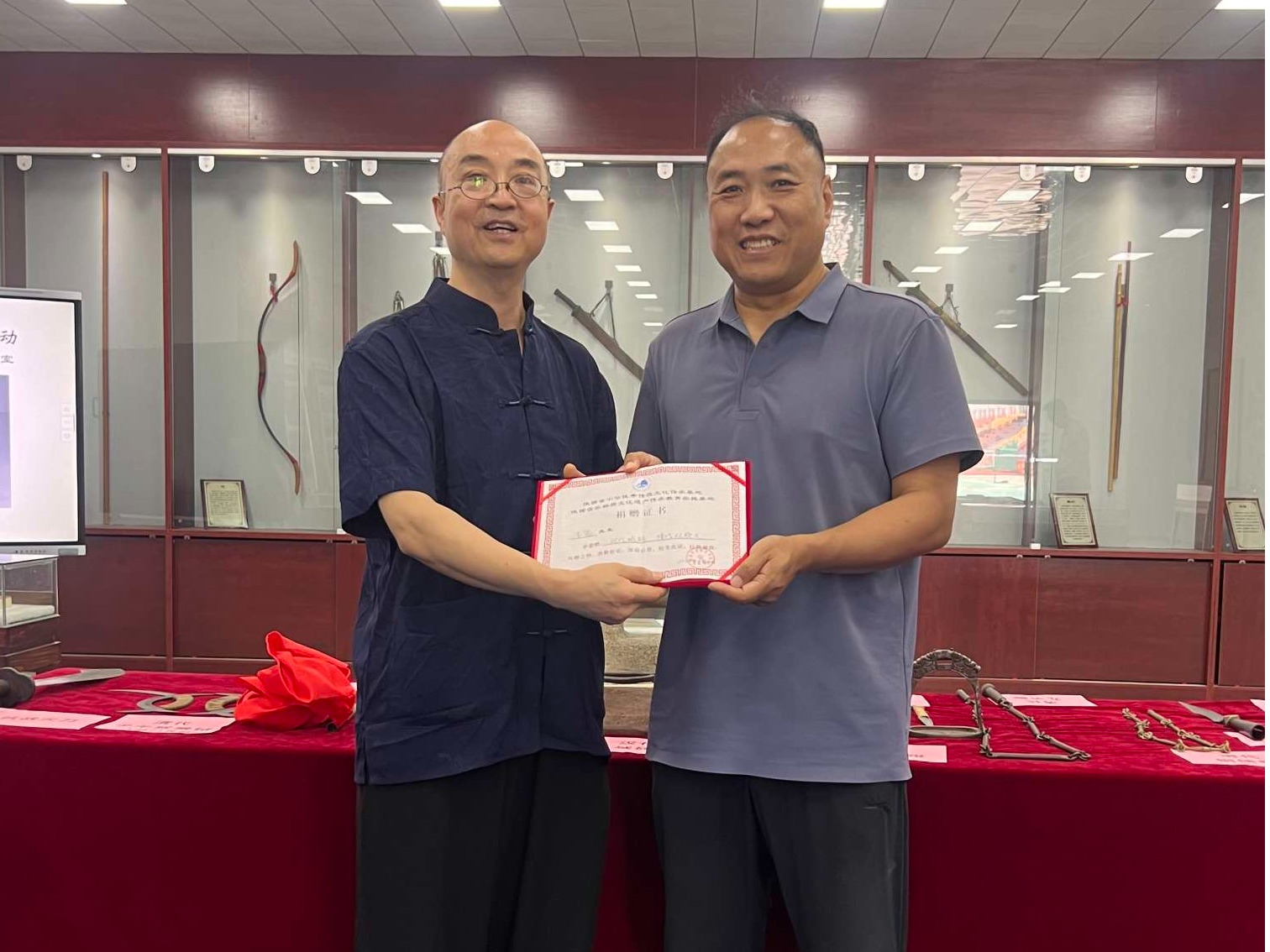 6月20日beat365特聘请古陶瓷、古兵器收藏家,“器说文明·用古物讲述中国”系列文化公益活动,分享人李鬼先生在beat365传承基地纪念馆举办主题为“古兵器进校园宣展活动”,近200多名师生参加了这次宣讲活动。随着李鬼先生对不同时期的古兵器的详细讲解,师生们进行了一次时空之旅,看到了距今七八千年前新石器时代的石斧,战国的青铜剑、青铜矛,明清以来的各种兵器和抗战时期的环首大刀,深刻感受中国尚武文化的智慧。本次宣讲活动李鬼先生为beat365传承基地纪念馆捐赠了两件古物:汉代城砖和清代双股叉。为表谢意,体育学院邵晓军院长为李鬼先生颁发了捐赠证书。这次传承基地武术文化工作坊系列活动使beat365师生深刻感受到了文化传承的力量,认识到新时代大学师生传承中华优秀传统文化的责任。在今后的学习工作中,我们当坚持以习近平新时代中国特色社会主义思想为指导,根植中华优秀传统文化深厚土壤,以社会主义核心价值观为引领,以立德树人为根本,以传承中华优秀传统文化为宗旨,进一步挖掘中华优秀传统文化价值内涵,进一步激发中华优秀传统文化的生机与活力,进一步增强文化自觉和文化自信。