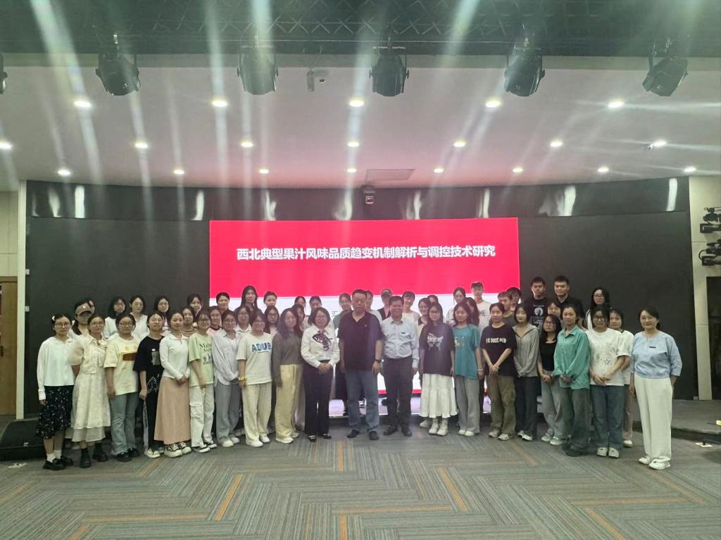 会后,田洪磊教授为我院师生做了一场题为《西北特色果汁风味品质趋变机制解析与调控技术研究》的学术讲座。讲座由王立志院长主持,百余名师生聆听了本次报告。田洪磊教授分享了他的科研团队近年来在风味品质预测和智能辨识技术和果汁特征风味物质组成及呈香属性解析等方面的研究成果,田教授介绍了其团队基于风味感官组学技术,解析特色果汁呈香组分,构建特色果汁智能化辨识系统,利用靶向酶解、特征物质回填融合等技术探讨西北特色果汁关键异味形成的机制,为果汁风味品质调控和西北果汁产业发展提供理论依据。
