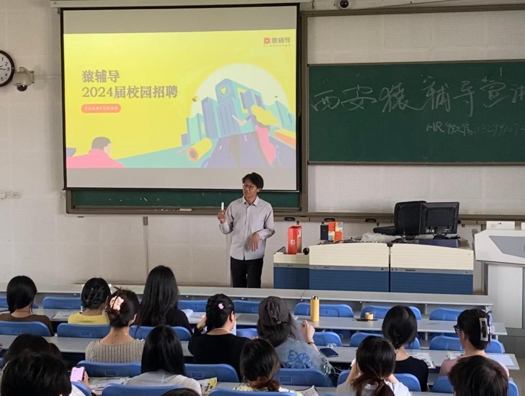 为持续促进2024届毕业生高质量就业工作,扩展就业岗位,4月26日,数学与统计学院在积学楼A3阶梯教室召开了毕业生专场招聘宣讲会。学院特邀西安猿辅导人力资源负责人张裕旺老师为学生宣讲。学院副书记、毕业班辅导员张晔及未落实就业的毕业生参加活动。