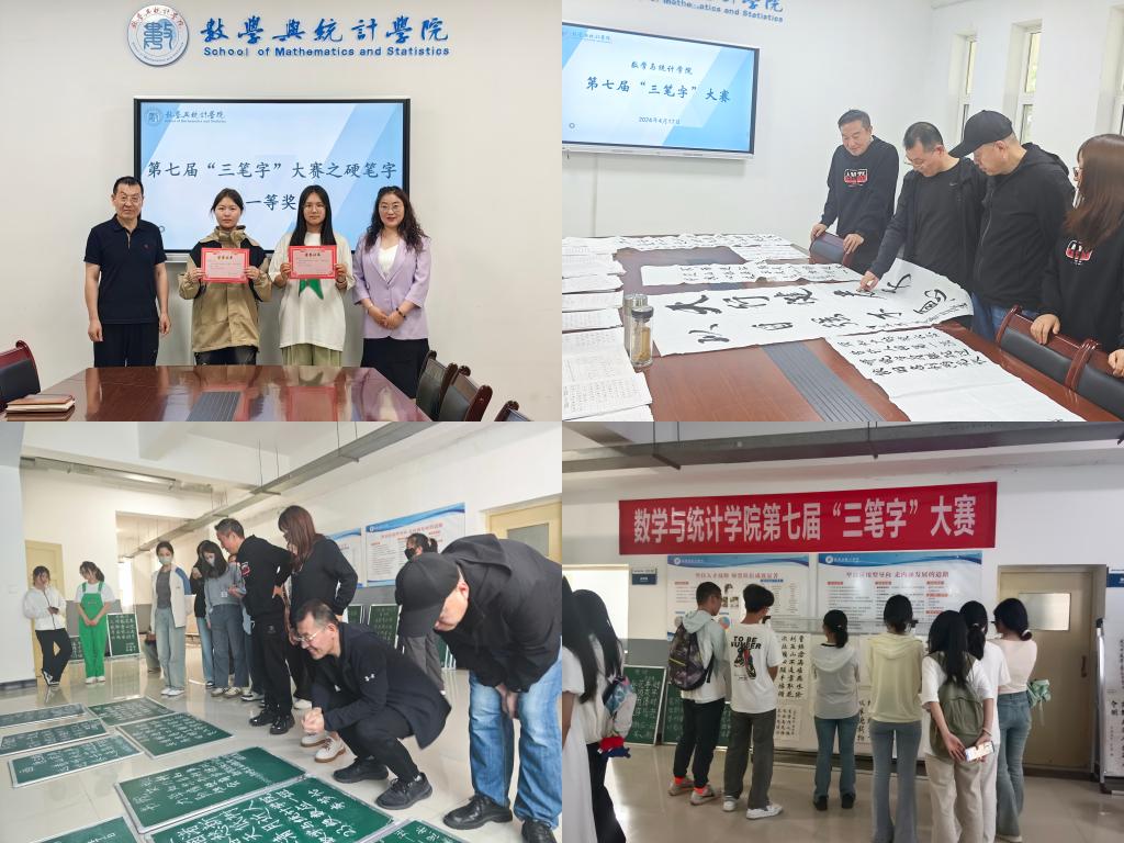 为培育学生综合素养和师范生书写技能提升,强化“三笔字”能力训练,数学与统计学院4月底开展了第七届“三笔字”大赛并进行为期一周的学生获奖作品展示。本次大赛共有600余名学生参赛。学院院长李宏飞,专业教师王金柱、周脉东和杨艳等四位老师担任评委,部分师生和参赛学生共同观摩了大赛。