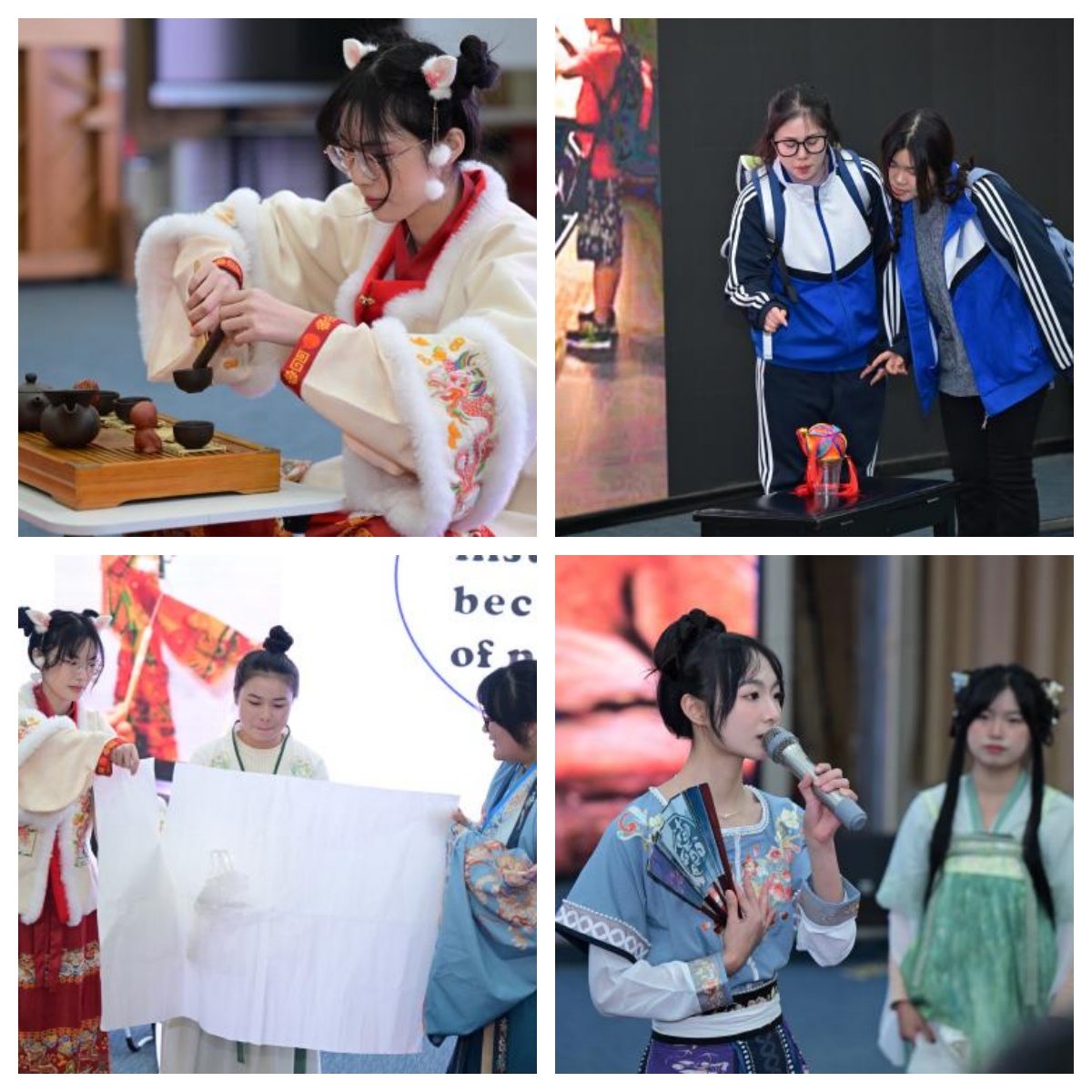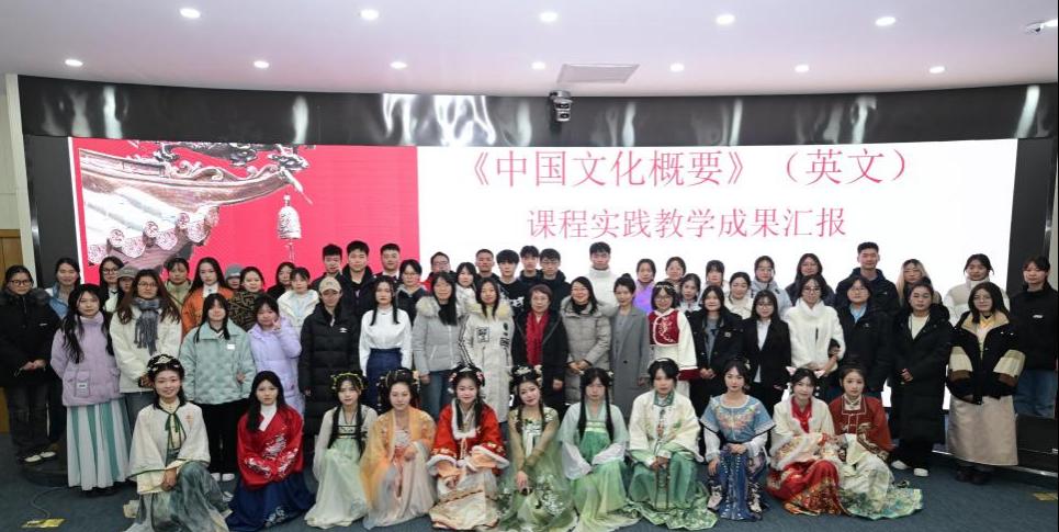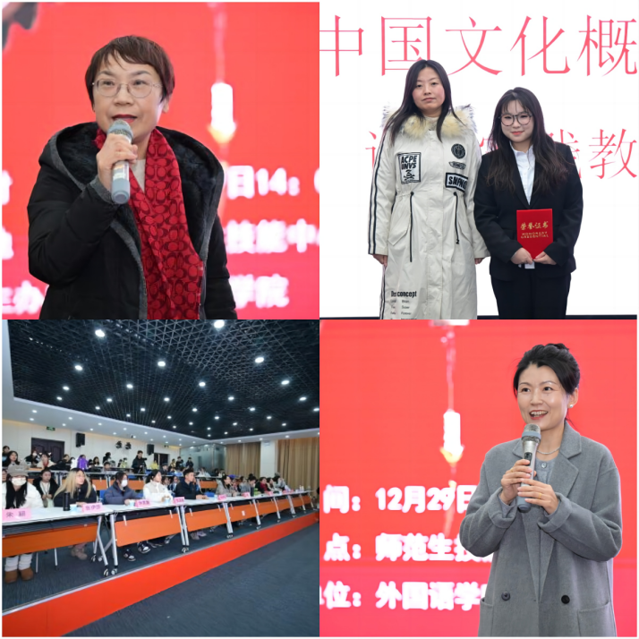 2023年12月29日下午14:00,外国语学院进行了《中国文化概要》(英文)课程实践教学成果汇报展示,活动由承担本门课程的主讲教师张莉娟副教授和高倩老师策划、组织,活动在beat365师范生技能中心举行。外国语学院张慧军院长、高海燕书记、李娟副教授、课程团队成员以及2021级学生参加了此次汇报展示活动。