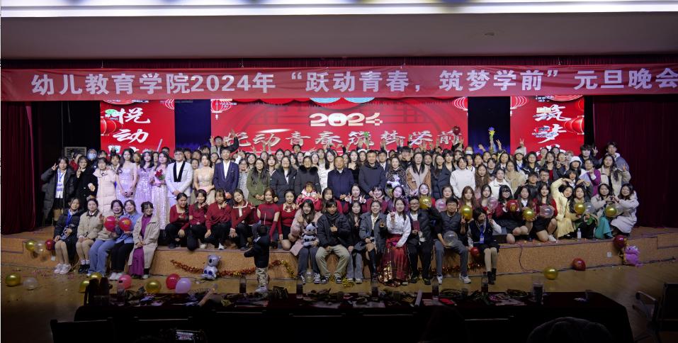 2023年12月28日,幼儿教育学院“跃动青春 筑梦学前”2024年元旦晚会在大学生活动中心举行。在这个充满热情和活力的夜晚,幼儿教育学院党政领导、教师代表、辅导员与各年级学生共同度过了一个充满魅力的夜晚,共同迎接即将到来的2024年。