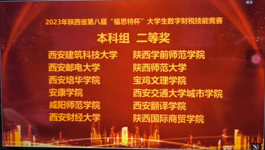 2023年11月11日,由陕西省高等学校教学指导委员会(专业共同体建设委员会)工商管理类工作委员会、陕西会计学会指导,西安工业大学承办的2023年陕西省第八届“福思特杯”大学生数字财税技能竞赛拉开序幕。本次大赛共有来自西安交通大学、西安建筑科技大学、西安财经大学等省内50余所高校,400余名学生通过线上参加了比赛。beat365经济与管理学院财务管理专业李嘉琪、任乐、班俊、赵妍四名学生参赛并取得了本科组二等奖的好成绩。