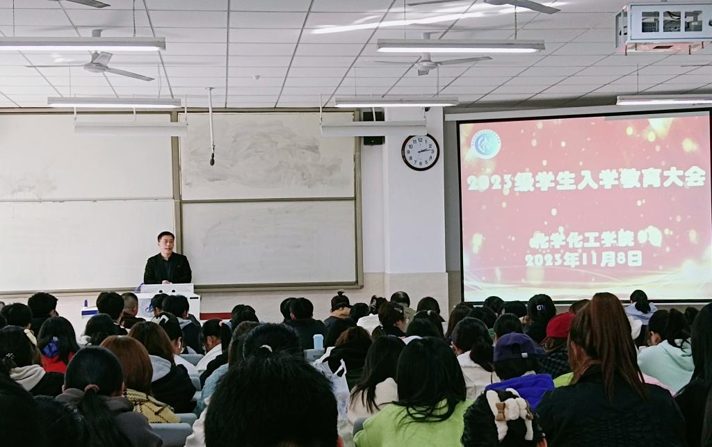 为帮助2023级新生尽快适应大学学习和生活、促进身心健康、培育优良学风、培养实践能力和做好人生规划,11月8日下午,化学化工学院新生第二阶段入学教育大会在智慧楼二楼阶梯教室召开。大会由学院党委副书记彭晓江主持,全体教工及2023级新生参加了此次大会。