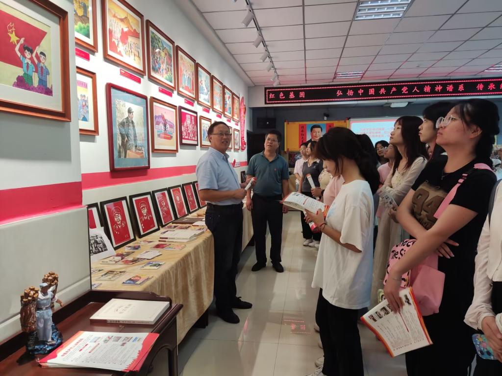 随后,万教授带领学生参观并逐一介绍了展览馆征集到的图片、书籍、实物展品等多份珍贵翔实的资料,同学们认真聆听讲解、不时驻足观看。这些图片和资料所讲述的一个个生动鲜活的革命故事,历史事件和英雄人物,让同学们深切地感受到中国共产党奋斗历程的艰辛和革命精神的伟力,深刻领悟到只有在中国共产党的领导和伟大精神指引下,中国人民才能取得如此举世瞩目的伟大成就,从而激励同学们自觉传承光荣传统,赓续红色血脉,担当起时代赋予的重任。