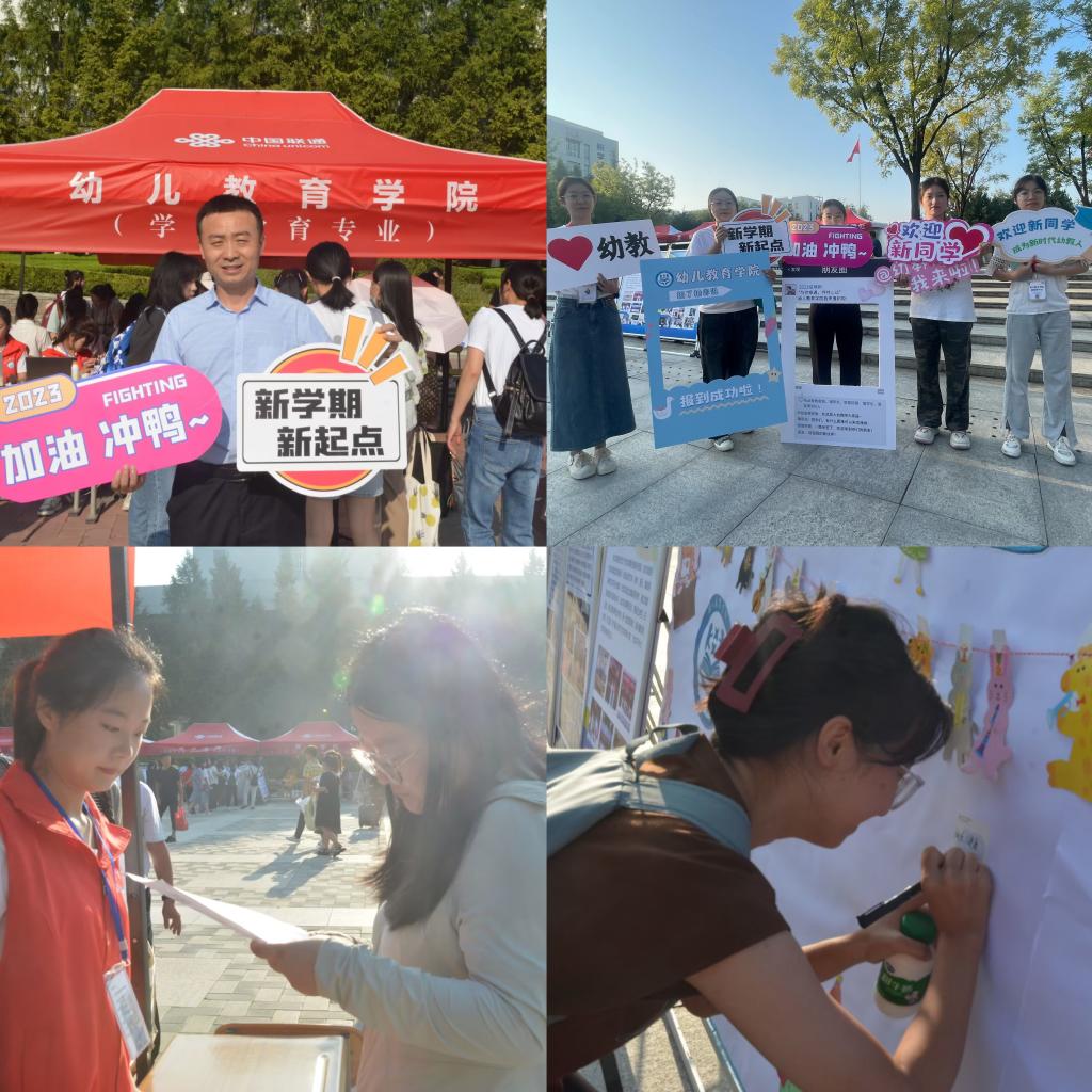 2023年9月7日-9月8日,幼儿教育学院喜迎324名2023级本科生。晨曦推开云雾,清晨的校园里,一张张报到桌光彩夺目、一个个忙碌的志愿者来去匆匆、一声声“同学,你好!”响遍校园。迎新现场,幼儿教育学院院长何善平、党委副书记(主持工作)王继康、党委副书记苏群、新生辅导员白雪祺等老师与新生及家长亲切交谈,尽己之力帮助每一位新生答疑解惑。志愿者们精神饱满,用温暖的笑容点燃新生对美好大学生活的憧憬。她们快乐的与新生合影、与新生交谈、帮助新生指路、拿行李,有序引导新生完成缴费、报到注册、材料审核、签字确认、军训服领取等工作,让新生们感受到了幼儿教育学院大家庭的温暖团结和真诚友爱。