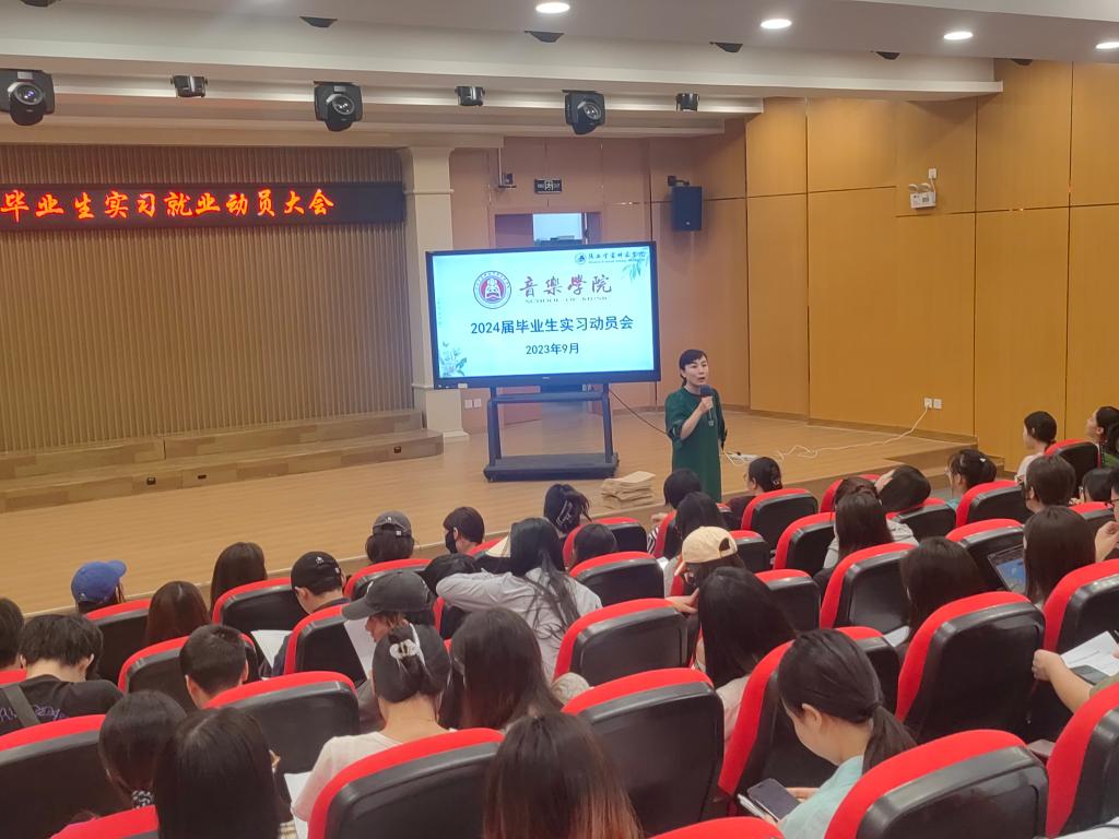 为帮助2024届毕业生将专业理论知识运用到实践中,明确实习要求,把握实习方案,引导同学们做好实习前的各项准备,确保毕业生实习、就业工作的顺利展开,9月15日上午音乐学院在beat365大学生艺术教育中心举办了教育实习就业动员大会。实习带队教师、毕业班辅导员及学院2024届毕业生参加本次会议。