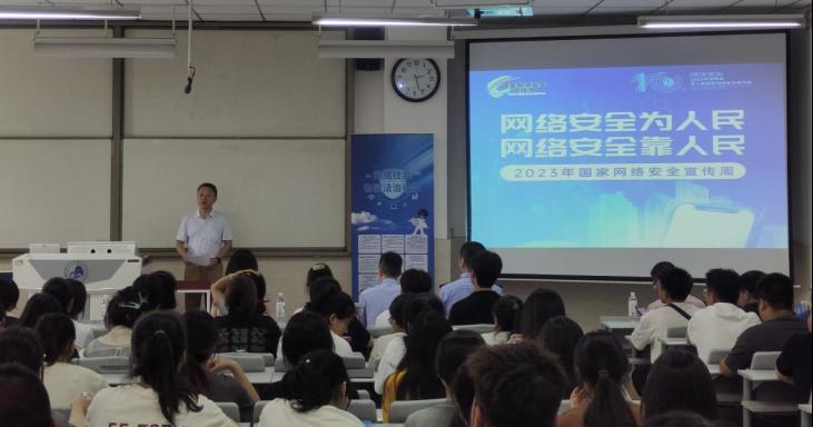 2023年9月14日,学校联合长安区网信办、长安分局网安大队、西安捷润数码科技有限公司举办了“守护网络安全,构建和谐校园”为主题的网络安全知识专题讲座。信息工程学院200余名学生参加,全校1万余名师生可线上观看。