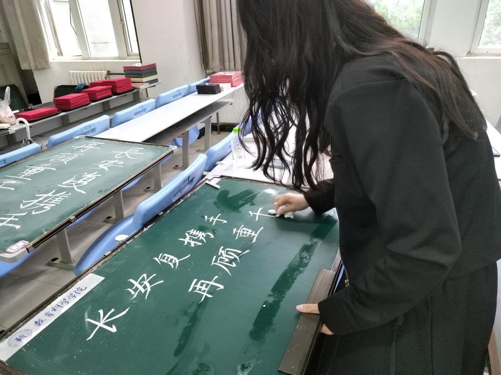 比赛过程中,选手们一丝不苟,严谨认真,提笔自信泰然,落笔行云流水。钢笔字隽秀挺拔,铁划银钩,字体方正整洁,结构均匀,点画精详,一撇一捺有力顿挫,笔力雄厚;粉笔字遒劲有力,一笔一画如行云流水般一气呵成,轻重缓中书写着自己的人生态度;毛笔字的丰厚雍容,一画之间,变起伏于锋杪,一点之内,殊衄挫于毫芒。在艺术字书写环节,参赛选手们的作品更是独有千秋,每一篇都展现了师院学子对书法独到的体会,一笔而下,观之若脱缰骏马腾空而来绝尘而去;又如蛟龙飞天流转腾挪,来自空无,又归于虚旷,深刻展现中华书法文化的深厚魅力。