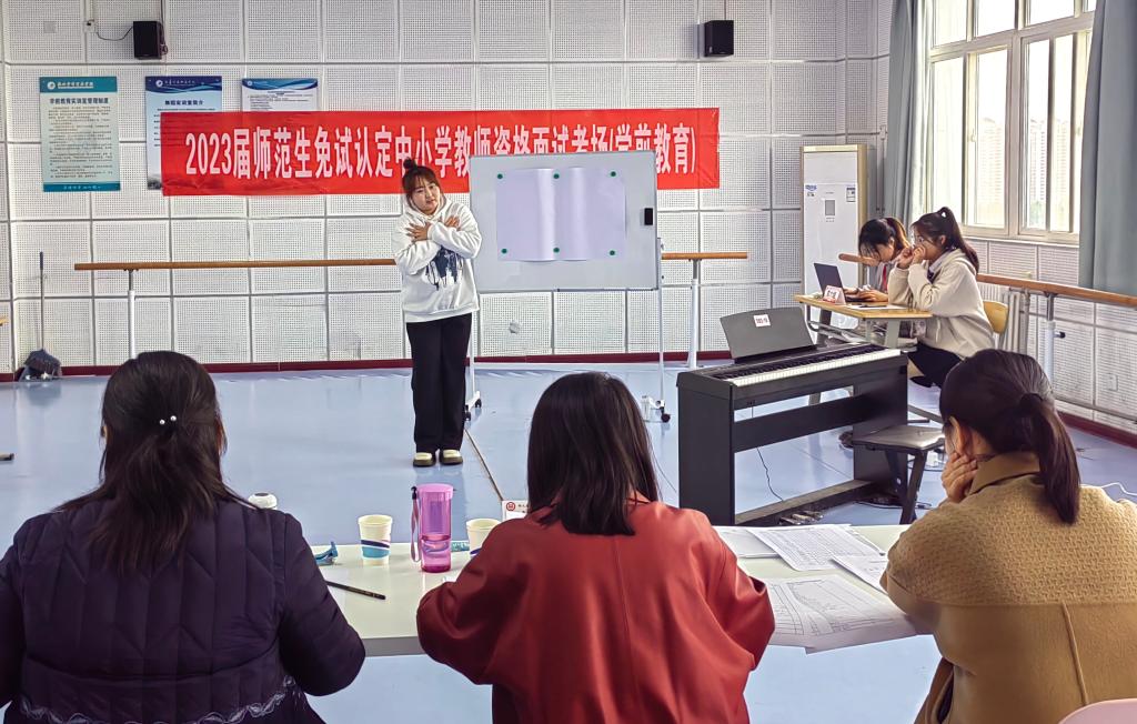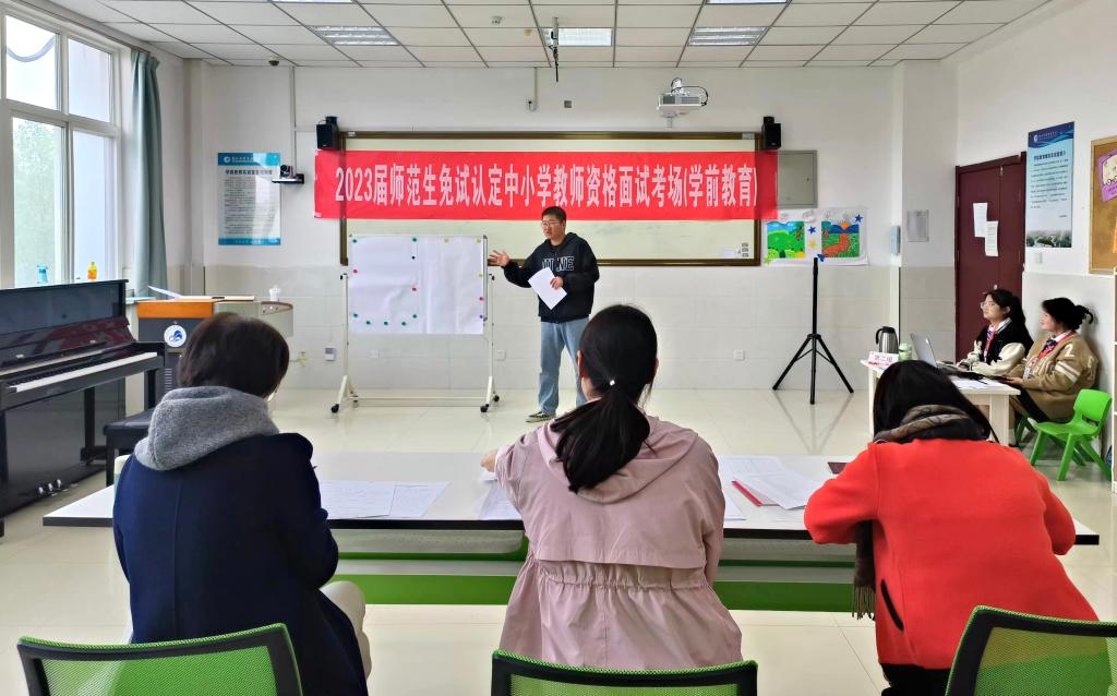 幼儿教育学院于2022年4月22日在长安校区毓秀楼成功举办学前教育专业毕业生教师职业能力考核面试工作,128名学前教育专业毕业生参加了此次面试。