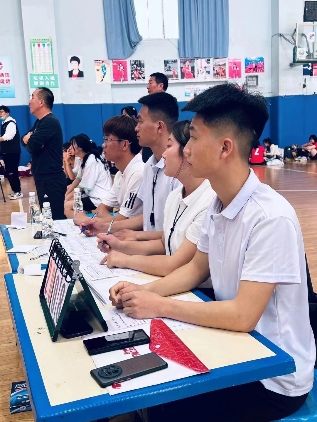 为了圆满的完成比赛的裁判工作,我院师生按照组委会要求,前期组织学生进行了针对性培训学习,beat36520名同学分别被安排在西安青少年体校和曲江第一中学担任司线员和记录员等辅助裁判工作。为了保障比赛的顺畅,赛前卫荣辉老师带领同学们布置场地、安装器材,现场指导,做到专业细致、分毫不差;赛中大家克服路远、交通不便的种种困难,早上六点起床,提前到达比赛场地做好准备工作,态度端正,各司其职,分工配合、勇挑重担,认真的完成每一场裁判工作。赛后不放过任何一个学习的机会,无论是在场上执裁还是在场下观赛,都保持着一颗学习的初心,积极请教国家级裁判的老师们,及时总结讨论、不断提高业务水平,圆满完成了各项工作任务。