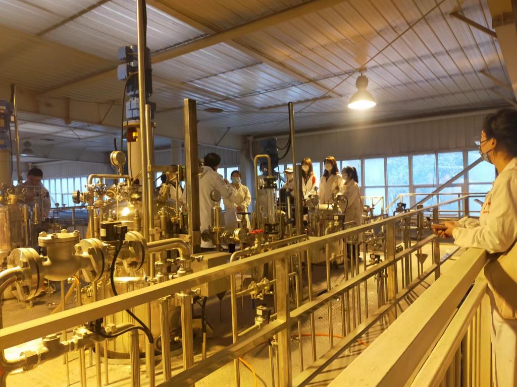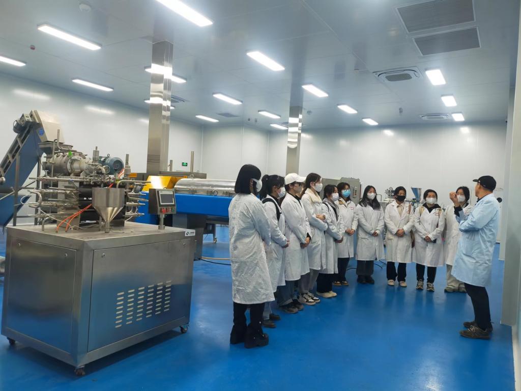 本次学习受到食品工程实训中心老师的热情接待。跟随食品工程实训中心老师的引导与讲解,师生首先了解了食品工程实训中心的发展历史、现有规模等基本概况,然后分别就果汁生产线、发酵生产线、啤酒生产线、提取生产线等进行了深入的学习。在实训中心老师的细致讲解下,同学们零距离学习了各类加工设备和生产线的结构组成、工作原理及实际应用。