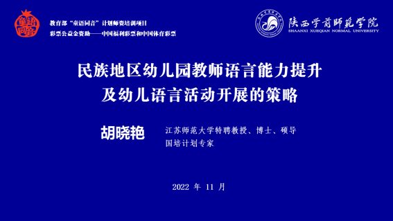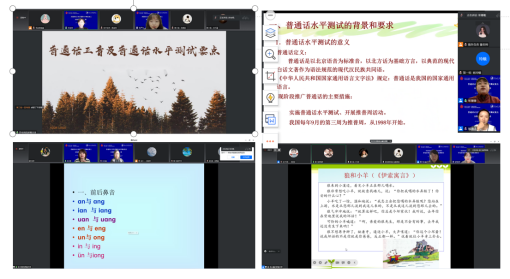 本阶段培训围绕民族地区幼儿园教师语言能力提升、普通话专项技能分组指导以及学员成果展示等内容,采取“学习—交流—实践—反思”、专题讲座与实战演练相结合培训模式,带给学员丰富多元学习体验和培训收获。江苏师范大学教授胡晓艳以《民族地区幼儿园教师语言能力提升及幼儿语言活动开展的策略》拉开培训帷幕;随后,学员围绕国家通用语言文字能力分组实训,指导学员正音提升;最后,学员以绘本朗诵、故事讲述等方式分组展示培训成果,9位国家、省级普通话测试员点评展示。培训充分调动和有力激发了学员参与积极性,保障了培训实效性与针对性。