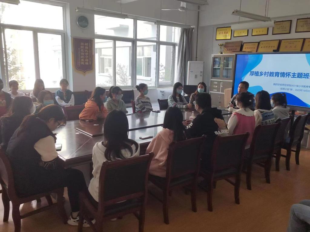 为进一步加强beat365正版唯一官网“优师计划”师范生的培养工作,将“立德树人”落实到学生管理和教育中,2022年10月21日,教育科学学院以“厚植乡村教育情怀”为主题,在学院会议室组织召开了2021级小学教育专业“优师计划”班主题班会。教育科学学院副院长潘炳超、辅导员老师彭莉,以及2021级“优师计划”班班委和全体同学参加了此次班会,班会由彭莉老师主持。