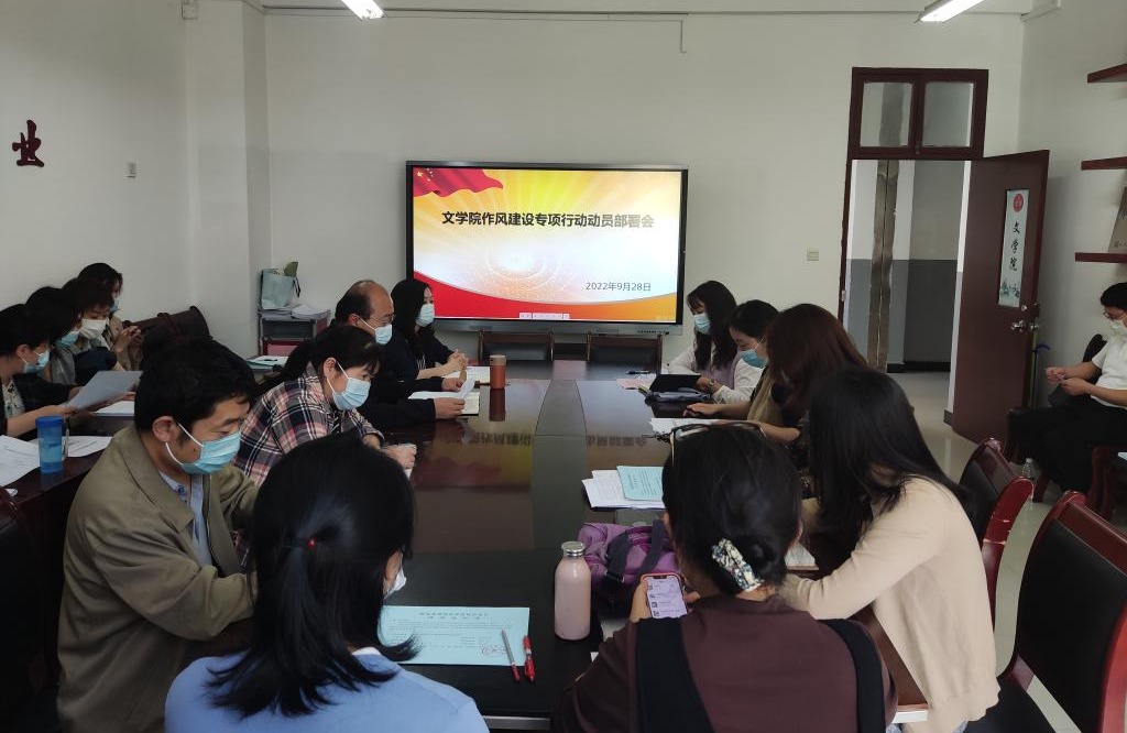 9月28日下午,文学院在博文楼A211会议室召开作风建设专项行动动员部署会,全面动员和安排部署作风建设工作。文学院领导班子、全体教工党员参加会议。会议由学院党委副书记庞曦主持。